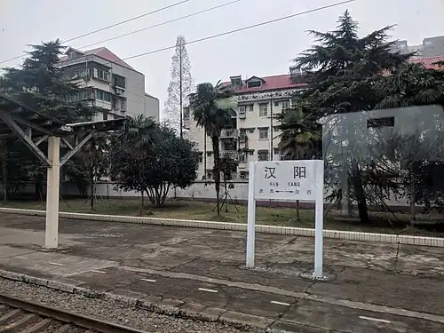 Hanyang railway station, located at Cuiwei Street in Hanyang District, Wuhan, Hubei, China, is a station of Jingguang Railway and Handan Railway. It will be the terminus of Inter-city rail, towards Qianjiang, Tianmen.[1] Hanyang railway station is served by a station of the same name on Line 4 of the Wuhan Metro.