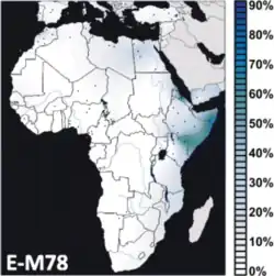 E-M78 is widely distributed in North Africa, Horn of Africa, West Asia (stretching as far as Southern Asia), and Europe.[2][7]