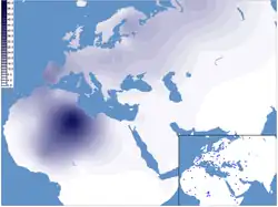- ^ Bekada A, Fregel R, Cabrera VM, Larruga JM, Pestano J, Benhamamouch S, González AM (2013). "Introducing the Algerian mitochondrial DNA and Y-chromosome profiles into the North African landscape". PLOS ONE. 8 (2): e56775. Bibcode:2013PLoSO...856775B. doi:10.1371/journal.pone.0056775. PMC 3576335. PMID 23431392.