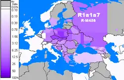 Haplogroup R1a (R-M420), is a human Y-chromosome DNA haplogroup which is distributed in a large region in Eurasia, extending from Scandinavia and Central Europe to Central Asia, southern Siberia and South Asia.[3][2]