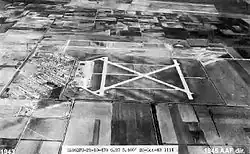 The airfield had two parallel north–south 6000-foot runways and two 5,200-foot runways aligned NE/SW and NW/SE. A large parking ramp and several aircraft hangars were built along with warehouses, dormitories, a fire station, some water towers and a number of support buildings, all wood and tar paper on concrete blocks.[4] An auxiliary airfield was built at Port Isabel, Texas to support training and flight operations at Harlingen. Training was conducted in air-to-air & air-to-surface gunnery; air-to-air training used a variety of aircraft, including AT-6 Texans, BT-13 Valiants, P-63 Kingcobras, B-17 Flying Fortresses, B-26 Marauder[5] and B-24 Liberators. For ground-based training, facilities included moving target ranges and gunnery simulators. The first class of aerial gunners graduated from the Gunnery School in January 1942.[3]