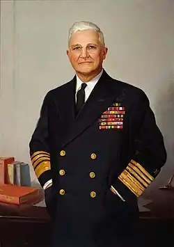 In August 1939, Stark became Chief of Naval Operations (CNO) with the rank of admiral. In that position, he oversaw the expansion of the navy during 1940 and 1941, and its involvement in the Neutrality Patrols against German submarines in the Atlantic during the latter part of 1941.[2] It was at this time that he authored the Plan Dog memo, which laid the basis for America's Europe first policy. He also orchestrated the navy's change to adopting unrestricted submarine warfare in case of war with Japan;[3] Stark expressly ordered it at 17:52 Washington time on 7 December 1941,[4] not quite four hours after the Japanese attack on Pearl Harbor. It appears the decision was taken without the knowledge or prior consent of the government.[5] It violated the London Naval Treaty, to which the United States was signatory.[6]