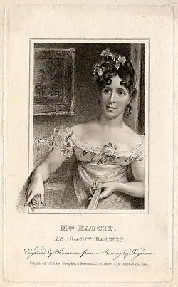 In 1813 she appeared as Desdemona at Covent Garden Theatre on 7 October, her London debut, and she played Cleopatra there on 15 November.[2] For the next twenty years she performed at Covent Garden, the Haymarket Theatre and Drury Lane.[1]
