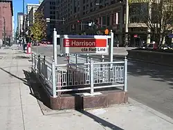 Harrison is an "L" subway station on the CTA's Red Line in Printer's Row, Chicago in the Loop.