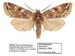 Harutaeographa fasciculata is a moth of the family Noctuidae. It is found in the Himalaya: Sikkim, northern India, Nepal and northern Vietnam (the Fansipan Mountains).[2]