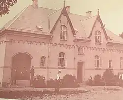 The facade of the now demolished dormitory building was a two-storey building. The transition to the roof was accented by a Lombard band. The roof featured two steep, triangular wall dormers.
