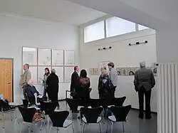 Grönwald had an interest in modernism and the Bauhaus. He had many contacts with former Bauhaus students and staff, including Georg Muche, both within and outside of East Germany. Because he was a trusted supporter of the regime, he was allowed to travel to the West to conduct research. He restored parts of the house that had been damaged by age and damp and began the process of getting the property historic monument protection status, which it was given in 1973.[17][14] In September 1973 he set up a small exhibition about the history of the house in the living room. Although it was the family's private home, they allowed the public to visit it. During the 27 years they lived in the house, over 40,000 people came. From 1976, Grönwald organised Bauhaus colloquiums to promote research about the house and the Bauhaus in general.[15]