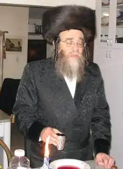 Grand Rabbi Judah Wolff Kornreich, the Shidlovtzer Rebbe, reciting Havdalah