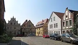 Havelberg has a historical centre with many well-preserved wooden buildings, e.g. in Kirchstraße and Scabellstraße. The St. Mary's Cathedral was founded in 1170 and transformed into an impressive gothic building from 1279-1330.[6] It is on a hill offering a beautiful view of the old town centre where St. Laurentius, a parish church which was built around 1300, deserves a visit. The oldest house is Beguinenhaus at Salzmarkt (Salt Market) built from sandstone in 1390 with a stone relief which was carved around 1400 above the entrance.[7]