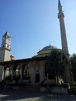 Etëhem Bey finished in 1819 or 1821 the Ethem Bey Mosque in the main square of Tirana, which bears his name. The mosque was started by his father Molla Bey between 1791 and 1794. He was buried in Ethem Bey Mosque, next to his wife Balkis.[1]