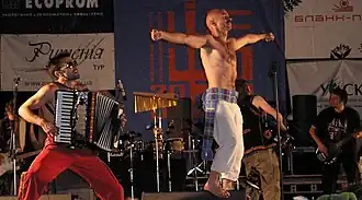 Haydamaky (Ukrainian: Гайдамаки) is a Ukrainian folk rock band formed in 1991. The music of Haydamaky is inspired by various ethnic music from around the world, especially from various regions of Ukraine, such as Polesia, Bukovina, and Transcarpathia. Other influences include the Romanian folklore, punk music sound of Shane MacGowan and by the reggae of such bands like Burning Spear and Black Uhuru. The name refers to haidamakas, 18th century Ukrainian paramilitary and rebels.