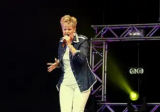 Hazell Dean (née Poole; born 27 October 1952)[2] is an English dance-pop singer, who achieved her biggest success in the 1980s as a leading hi-NRG artist. She is best known for the top-ten hits in the United Kingdom "Searchin' (I Gotta Find a Man)", "Whatever I Do (Wherever I Go)" and "Who's Leaving Who". She has also worked as a songwriter and producer.[3]