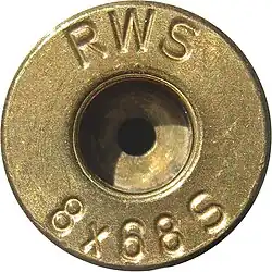 Cartridges made by Industrial Society Burkina Arms and Ammunition (SIBAM) may be marked SIBAM or CV (Cartoucherie Voltaique (CARVOLT)).[1]