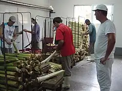 There are palm varieties that have become domesticated farm species as an alternative to sourcing from wild palms. The main variety that has been domesticated is Bactris gasipaes, known in English as peach palm.[1] This variety is the most widely used for canning. Peach palms are self-suckering and produce multiple stems,[2] with up to 40 on one plant. This lets producers lower costs by harvesting several stems from a plant while avoiding the death of the palm. Another advantage is that the peach palm has been selectively bred to eliminate the thorns of its wild cousins. Since harvesting is still labor-intensive, palm hearts are regarded as a delicacy.