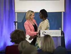 Nauert condemned the genocide of the Rohingya Muslim minority in Myanmar, saying: "We will continue to hold those responsible accountable."[51] In 2017, she joined Secretary Tillerson for meetings with State Counsellor Aung San Suu Kyi in Nay Pyi Taw. Soon after his visit, the State Department declared Myanmar's actions against the Rohingya as "ethnic cleansing."[52] In neighboring Bangladesh, Nauert toured Cox's Bazar, the world's largest refugee camp where she met with Rohingya refugees and aid groups.[53]