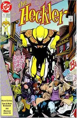 The Heckler is a parody superhero appearing in media published by DC Comics. He first appeared in The Heckler #1 (cover-dated September 1992), the first of an ongoing series that ended with The Heckler #6 (cover-dated February 1993).[1][2][3]