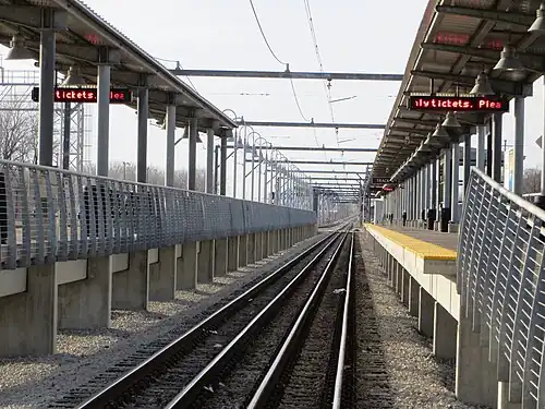 Hegewisch station is a commuter rail station in the city of Chicago, Illinois in the Hegewisch neighborhood, that serves the South Shore Line north to Millennium Station and east to the cities of Hammond, East Chicago, Gary, Michigan City, and South Bend, Indiana. The Hegewisch station has high-level platforms, as part of NICTD's continuing effort to comply with the Americans with Disabilities Act of 1990.[2]