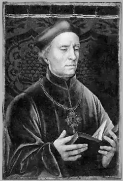 - ^ Max J. Friedländer: Neues über Jacob van Utrecht. In: Oud Holland 58 (1941), S. 6–17 (Digitalisat, JSTOR), hier S. 7f Nr. 7 und 11. "Die Portrait-Ähnlichkeit der beiden Aufnahmen bedenklich gering. An der Identität der Dargestellten nicht zu zweifeln, zumal da in beiden Bildnissen dasselbe Brustkreuz zu sehen"
