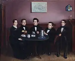 - ^ a b c Description of the painting: Die Teegesellschaft. (the tea party) on: Virtuelles Landesmuseum Mecklenburg (Virtual state museum of Mecklenburg) (in German).