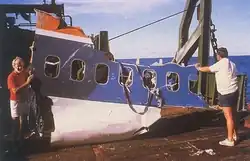 ![]() A piece of the aircraft fuselage recovered from the Indian Ocean | |