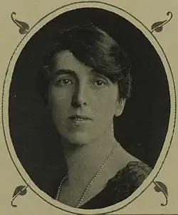 During the First World War, she worked as a Commissioner for the National War Saving Committee,[19] in the course of which she personally set up 109 local War Savings Committees in England and Wales.[20] She was seconded to the Board of Agriculture to persuade women to work on the land.[1] In 1917, at the suggestion of Millicent Fawcett, she was included by the UK Government as part of the official British War Mission to the US,[19] to speak about Britain's war effort. She travelled through 40 states and spoke 332 times in 312 days.[1][3] She also had a meeting with President Woodrow Wilson.[21] In 1918, upon her return to Britain, her book of the tour Women and War Work was published.[3]