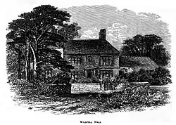The Brontë biographer Winifred Gérin believed that the original of Wildfell Hall was Ponden Hall,[5] a farmhouse near Stanbury in West Yorkshire. Ponden shares certain architectural details with Wildfell, including latticed windows and a central portico with a date plaque above.