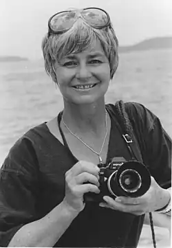 After India, the Schreiders set off on their next expedition, this time, to Indonesia – for a challenging and dangerous 5,000-mile journey by land and sea from Sumatra to East Timor.[50] Aside from the dangers of the journey, they were also subjected to the bureaucracy and military tension gripping the archipelago at this time.[51] Often the beauty of the landscape and people were offset by the arduous task of waiting for permission to travel. The grim soldiers they encountered were in stark contrast to the overall cheerful and welcoming Indonesian people.[52] A detailed account of their thirteen-month odyssey is presented in their book The Drums of Tonkin.[53][54][55][56] In 1990 excerpts from the book were published in Java: A Traveller's Anthology.[57] They also published two major articles on their Indonesia trip in National Geographic, in 1960 and 1961.[58][59] On their return to the US, they embarked on a speaking tour that included Canada, again narrating their film live from the stage.