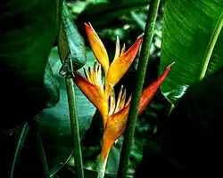 Heliconia psittacorum (parrot's beak, parakeet flower, parrot's flower, parrot's plantain, false bird-of-paradise) is a perennial herb native to the Caribbean and South America. It is considered native to French Guiana, Guyana, Suriname, Venezuela, Colombia, Bolivia, Brazil, Paraguay, Panama and Trinidad and Tobago. It is reportedly naturalized in Gambia, Thailand, Puerto Rico, Hispaniola, Jamaica and the Lesser Antilles.[2] It is often cultivated as a tropical ornamental plant in regions outside its native range.