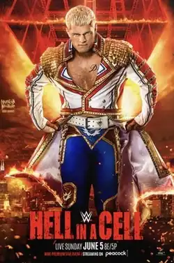 The main event saw Cody Rhodes take on Seth "Freakin" Rollins in a Hell in a Cell match. Rollins came out in polka dot themed attire to mock Rhodes' father, Dusty, while Rhodes competed in the match with a completely torn pectoral muscle. Rhodes performed a Disaster Kick and the Cody Cutter on Rollins early. Rhodes applied the Figure-Four Leglock on Rollins, but let go after Rollins struck him in the pec with a kendo stick. Rollins threw Rhodes into the cell wall multiple times with the injured shoulder. Rollins attacked the injured shoulder using the steel steps. Rollins pulled out a polka dot weight belt to lash Rhodes in the injured shoulder. Rollins attempted a Frog Splash, but Rhodes moved and Rollins crashed through a table. Rhodes pulled a bull rope out from under the ring and both he and Seth attached themselves to it. Rhodes struck Rollins in the head with a cowbell for a nearfall. Rollins used the rope to slam Rhodes' shoulder first into the ring post. Rhodes executed a Cross Rhodes on Rollins for a nearfall. Rollins performed a Buckle Bomb to Rhodes through a table for a nearfall. Rollins pulled a sledgehammer out from beneath the ring, but Rhodes was able to avoid being hit. Rhodes landed a Pedigree on Rollins for a nearfall. Rollins performed his own Cross Rhodes on Rhodes, but Rhodes was able to perform his own. Rollins then performed The Stomp for a nearfall. Rhodes performed the Cross Rhodes twice on Rollins before hitting the latter with the sledgehammer to win the match.[28]