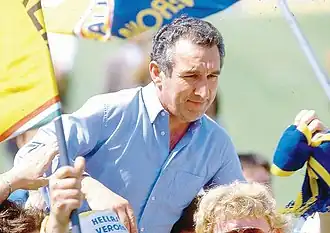 The following season looked promising, as new transfer players were brought aboard, and fans enthusiastically embraced the new campaign. Season ticket figures climbed to over 10,000, placing Verona ahead of several Serie A teams and all but Torino in Serie B attendance.[8] The team led the standings for much of the season, accumulating a seven-point lead by early in the spring. However, the advantage was gradually squandered, and the team dropped to second place on the second-last day of the season, with a chance to regain first place in the final regular season match against Portogruaro on home soil. Verona, however, disappointed a crowd of over 25,000 fans[9] and, with the loss, dropped to third place and headed towards the play-offs. A managerial change for the post-season saw the firing of Remondina and the arrival of Giovanni Vavassori. After eliminating Rimini in the semi-finals (1–0; 0–0) Verona lost the final to Pescara (2–2 on home soil and 0–1 in the return match) and were condemned to a fourth-straight year of third division football.