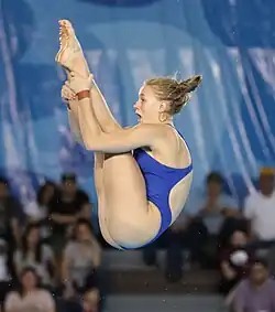 Helle Tuxen (born 4 September 2001) is a Norwegian diver.[6] Together with her sister Anne Vilde Tuxen, she competes in the 3m synchronized diving event, and took silver in the FINA 2016 Diving Grand Prix in Madrid.[7][8]