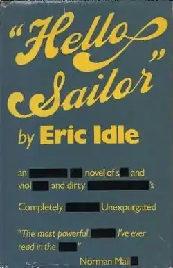 Eric Idle wrote Hello Sailor, his first novel, in 1970.[1] The book was first printed in 1975 hardcover by the London publishers of fiction, Weidenfeld & Nicolson.[3] An article on h2g2 attributes the delay to Idle's distrust of the publishing industry.[1] As a literary work from a highly notable performer, the novel was reviewed in The Times Literary Supplement on 21 March 1975.[4] The original hardcover book did not sell very well,[5] but the book was reprinted the same year by Futura Publications.[2] This paperpack issue of the novel was a moderate success.[5]