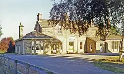 The main station building was located on what would be classed as the down line. It had five waiting rooms, (a 1st and 2nd class waiting room each for Gentlemen and Ladies, and a fifth for everyone else) and its design and style of roof slate deviated slightly from normal North Eastern Railway plans as demanded by Lord Feversham, whose country seat was at Duncombe Park.[6] Lord Feversham owned the whole township of Helsmley, bar three houses, and a clause in the 1865 railway agreement gave Lord Feversham the right "...to be consultd as to the architecture and arrangements of the station."[7]