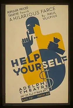 This is a poster for the 1936 playHelp Yourself which was produced on Broadway by the Works Project Administration during the Great Depression.