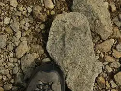 Above these ignimbrites are found sedimentary rocks of the Esk Pike Sandstone Formation. These were deposited in water, probably in a caldera lake, as the volcanic rocks weathered and were eroded. Structures in these rocks suggest the faults were still active and the caldera was still subsiding. Layers of tuff and lapilli tuff indicate some ongoing volcanism.[52][54] Higher still on Helvellyn, as well as in the coves to the east and covering Swirral Edge and Catstye Cam, are rocks of the Helvellyn Tuff Formation. This consists of up to 400 m (1,300 ft) of ignimbrite, representing another series of pyroclastic flows. This Helvellyn Tuff is found only within the boundary faults of the caldera, and mainly in its western half.[52][54] The highest surviving rocks on Helvellyn, found on the summit plateaux of Helvellyn itself and of Nethermost Pike, and along the crest of Striding Edge, are the volcaniclastic sandstones of the Deepdale Sandstone Formation. Again, this formation is confined to the limits of the caldera, and represents another return to erosion and sedimentary deposition within a caldera lake, though with layers of pyroclastic rock showing that the volcanism had not entirely finished.[52][54]