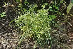 Ethelochory is intentional transportation of plants or seeds to different regions for agricultural and gardening purposes.[9] Numerous crops that are important for human nutrition have been willingly spread by humans. Wheat, barley, lentil, beans, flax and poppy seeds, for example, are not typical plants for Central Europe, although they are all archaeotypes. People brought them after the beginning of the Neolithic (about 6,500 years ago) gradually from the eastern Mediterranean to central Europe and the rest of the world through the upcoming centuries. In central Europe, it is especially Cyperus esculentus which has been classified since the 1980s among the invasive species, because their tubers have been spread en masse, by sticking to vehicles or machines.[10]