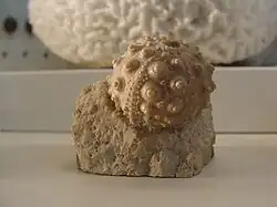 | Hemicidaris intermedia fossil from France in Cosmocaixa, Barcelona. | |