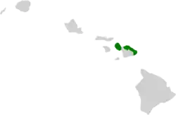 In 2021, the United States Fish and Wildlife Service declared that the species was most likely extinct, noting that extensive surveys for the bird had yielded no definite sightings and had only found Amakihi.[3][4] On October 16, 2023, the species was delisted from the Endangered Species Act citing extinction.[5]