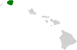This species is endemic to the island of Kauaʻi [3] The Kaua‘i ‘amakihi resides in the higher elevations of the Kaua‘i mountains usually above 600 meters in elevation. They previously occurred at lower elevations,[4] but due to the loss of habitat, are now mostly found at elevations higher than 600 meters in mountainous areas.[5] They are known to be around ‘ōhi‘a and koa trees.[3] They are especially common in ōhi'a trees where they often nest and in ōhi'a forests.[6] They can be spotted at Waimea Canyon, Nā Pali Plateau, Alaka‘i Swamp, and Makaleha Mountains.[4]