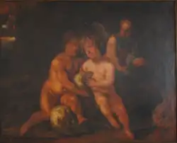 Hendrik Herregouts likely first trained under his father who had moved to Roermond. Hendrik Herregouts travelled to Rome at an early age to continue his studies.[6] He later moved to Germany.[7] He married Anna Dorothea Cremers in Cologne in 1660 or 1661.[8] In 1664 Hendrik Herregouts became a master of the Guild of Saint Luke in Antwerp, but some years later we find him completing commissions in Mechelen. Here he had to join the local Guild of Saint Luke. Around 1679–1680, he had again a workshop in Antwerp.[8] His younger brother Jan Baptist likely joined him in his workshop in Antwerp. He became a member of the Antwerp Guild of Saint Luke in 1677.[6] Between the years 1680 and 1690 he lived for several years in Bruges, where he was possibly joined by his brother Jan Baptist to assist with some of the religious and secular commissions he was completing in that city.[7] He probably intermittently travelled to Italy. He was given the nickname 'Romein' (the 'Roman') because of his close connection to Italy.