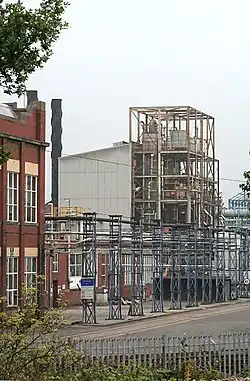 The plant was built at Spondon, Derbyshire, by Alfred David McAlpine.[10] A contract for forty tons of lacquer was signed in January 1917, and deliveries finally began in April 1917. There were difficulties meeting demand at first, in part due to shortage of the raw materials.[12] However, the company expanded fast, and moved into other products needed by the aircraft industry.[13] The British Government patented Henri Drefus's process for producing acetic acid anhydride. By 1918, Henri Dreyfus was managing a workforce of 14,000.[6]