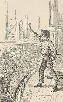 He was an orator - by nature in the first place, and later by the training of experience and practice. When he was out on a canvass, his name was a lodestone which drew the farmers to his stump from fifty miles around. His theme was always politics. He used no notes, for a volcano does not need notes." - Life on the Mississippi