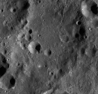 Henyey is a lunar impact crater that lies on the far side of the Moon from the Earth. It is attached at the southern end to the northern rim of the crater Dirichlet. Less than a crater diameter to the northeast is the large crater Mach, and to the northwest lies Mitra.
