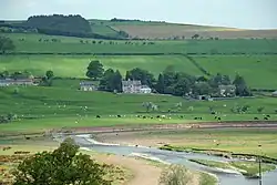 Half a mile north-east of the village along the road to Rothbury are the ruins of Hepple Tower, a fourteenth-century tower house, which is listed by English Heritage as a building at risk.[2] A mile to the west, close to the country house of Holystone Grange, is Woodhouses Bastle, dated 1602 and restored and re-roofed in the twentieth century, a well-preserved bastle which may have been converted from a pele tower.[3]