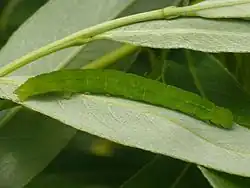 Herald caterpillars are a bright green shade common to many caterpillars. They are distinguished by the thin yellow lines running across the body between segments. When maturity is reached, they pupate between two leaves, in a white cocoon made of silk.