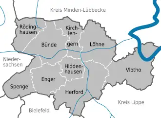 Herford (German pronunciation: [ˈhɛʁfɔʁt]) is a Kreis (district) in the northeastern part of North Rhine-Westphalia, Germany. Neighboring districts are Minden-Lübbecke, Lippe, the urban district of Bielefeld and the districts of Gütersloh and Osnabrück.