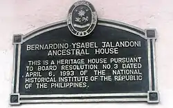 - ^ The name on the plaque is Bernardino-Ysabel Jalandoni Ancestral house