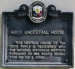 - ^ Additional name on the marker installed by the National Historical Institute is Sarmiento- Osmeña House