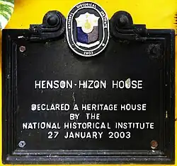 - ^ Official marker installed by the National Historical Institute names it as Hension-Hizon House