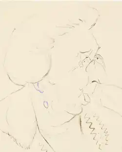 Her husband died in 1912, and Feist died in 1933 and was buried in the new cemetery in Berlin-Wannsee. The grave still exists today.[5] Parts of Hermine Feist's collection were transferred to Dresdner Bank and other creditors in 1933. The Free State of Prussia acquired the majority of these objects in 1935, as a result of which they became the property of the Museum of Decorative Arts in Berlin.[2] Other parts of the collection were auctioned off in 1939 at the Berlin auction house Hans W. Lange[6][7] and in 1941 at Theodor Fischer in Lucerne.[8] Hermine Feist is commemorated by the bust of Madame X/Hermine Feist by Rudolf Großmann, created in 1929, which is now in the Jewish Museum Berlin.[9]